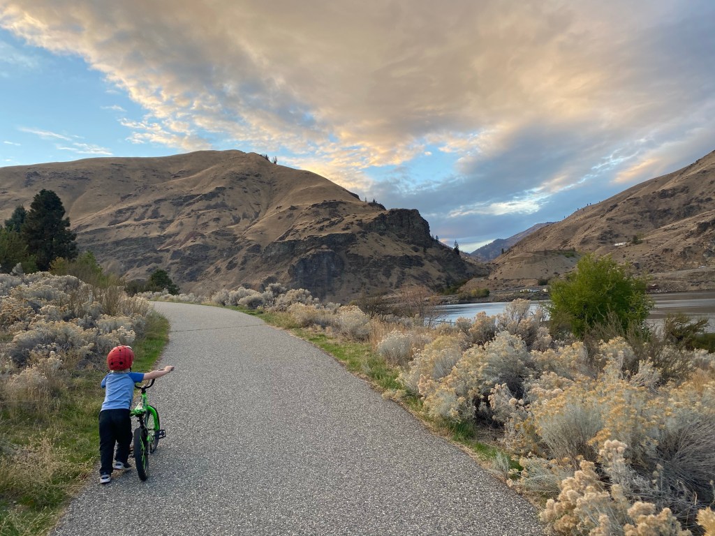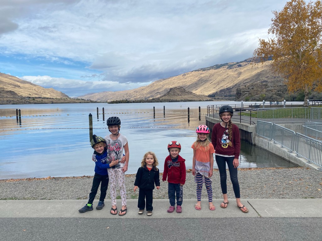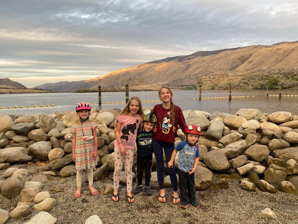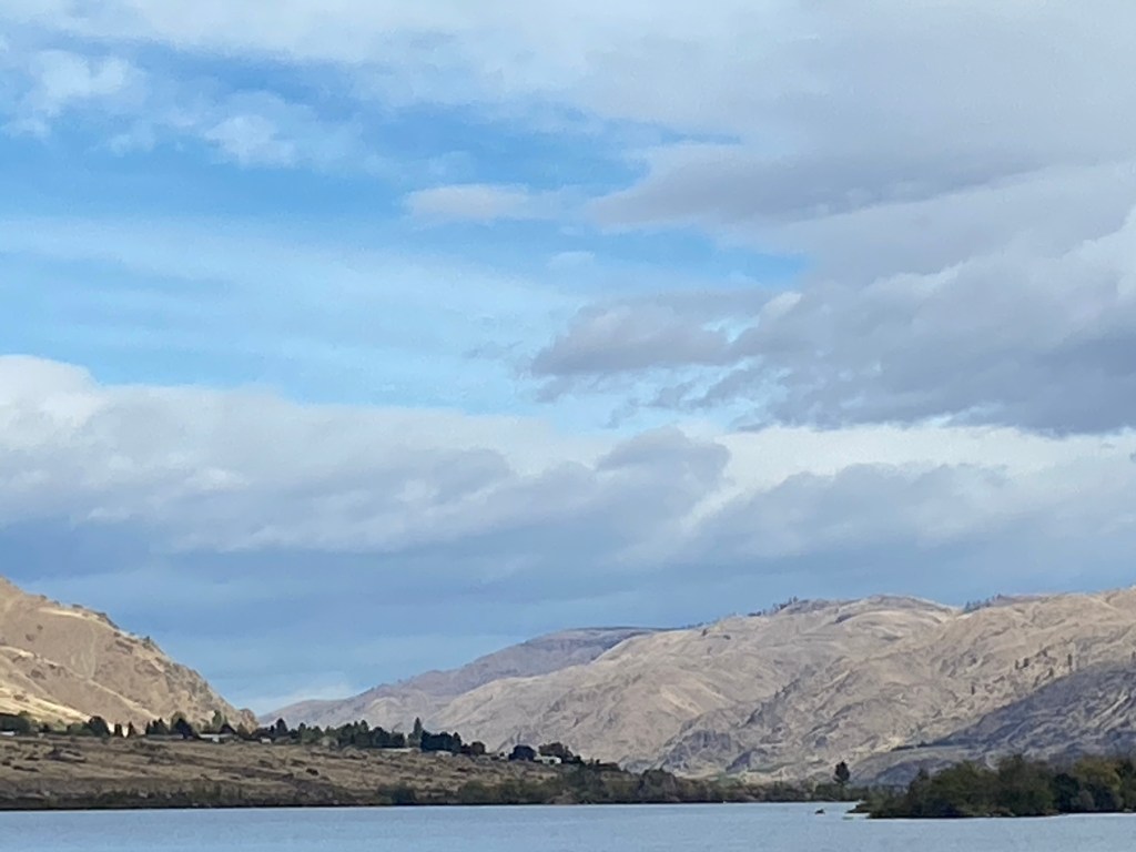 The next day, our first in Lincoln Rock Park, we were awed by the dry, beautiful high desert painted in autumnal colors. Rolling hills that looked like the hands of giants reaching over the edge of earth that I imagined as a child. All cut in half by the wide beautiful Columbia River.