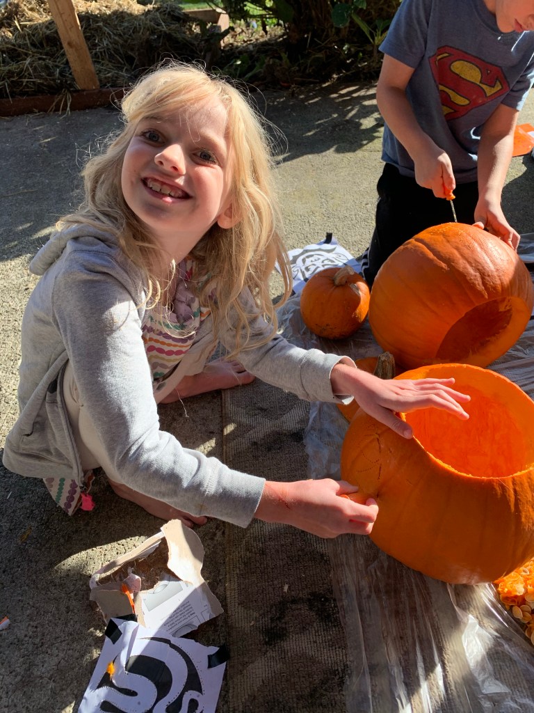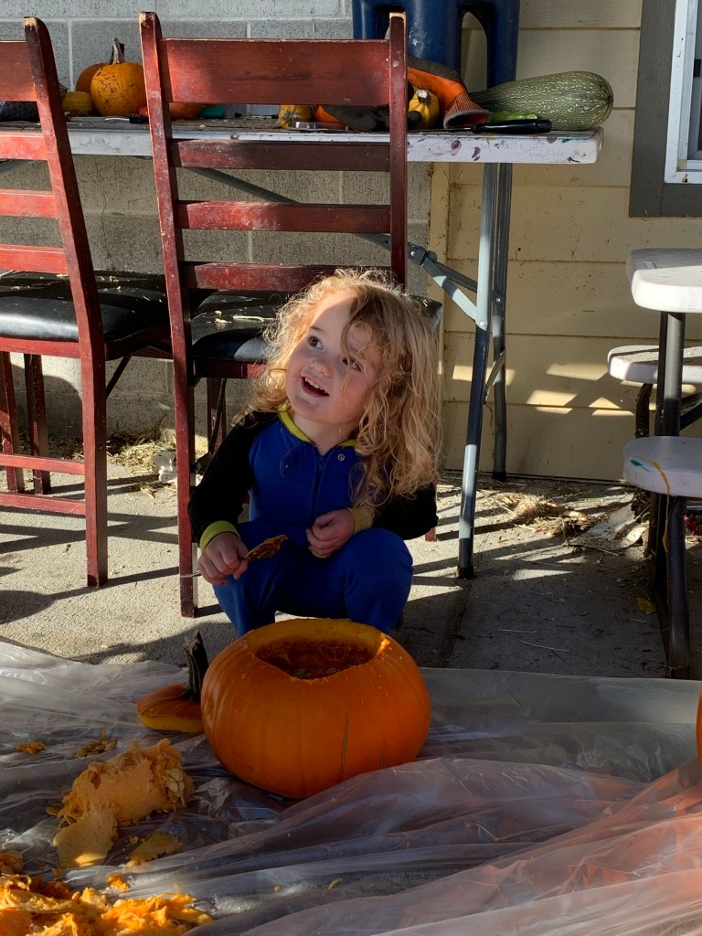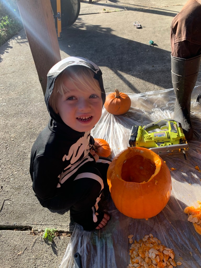 This was quite upsetting and every time it was mentioned Wyatt begged us to relent. When the day finally came, we started with pumpkin carving.