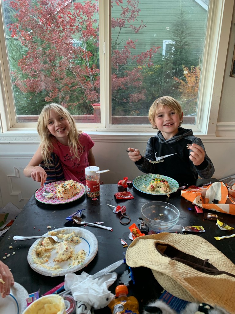 Every now and then I hear about people whose children sleep until eight, nine, or until they are hostilely woken up… I don’t know who you are, or how that happens… but in our house the kids are waiting to storm downstairs when the light turns green. When they go to bed extra late on the Fourth of July or New Year’s Eve? Nope. Still up at seven.