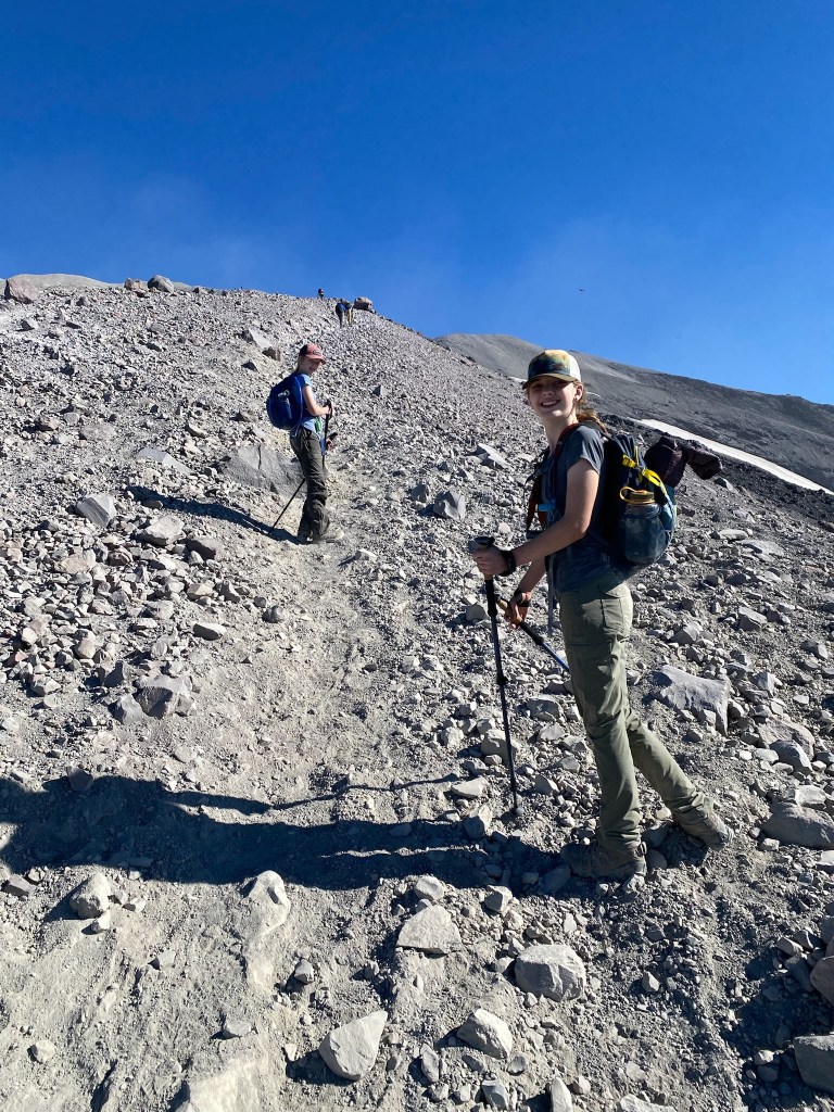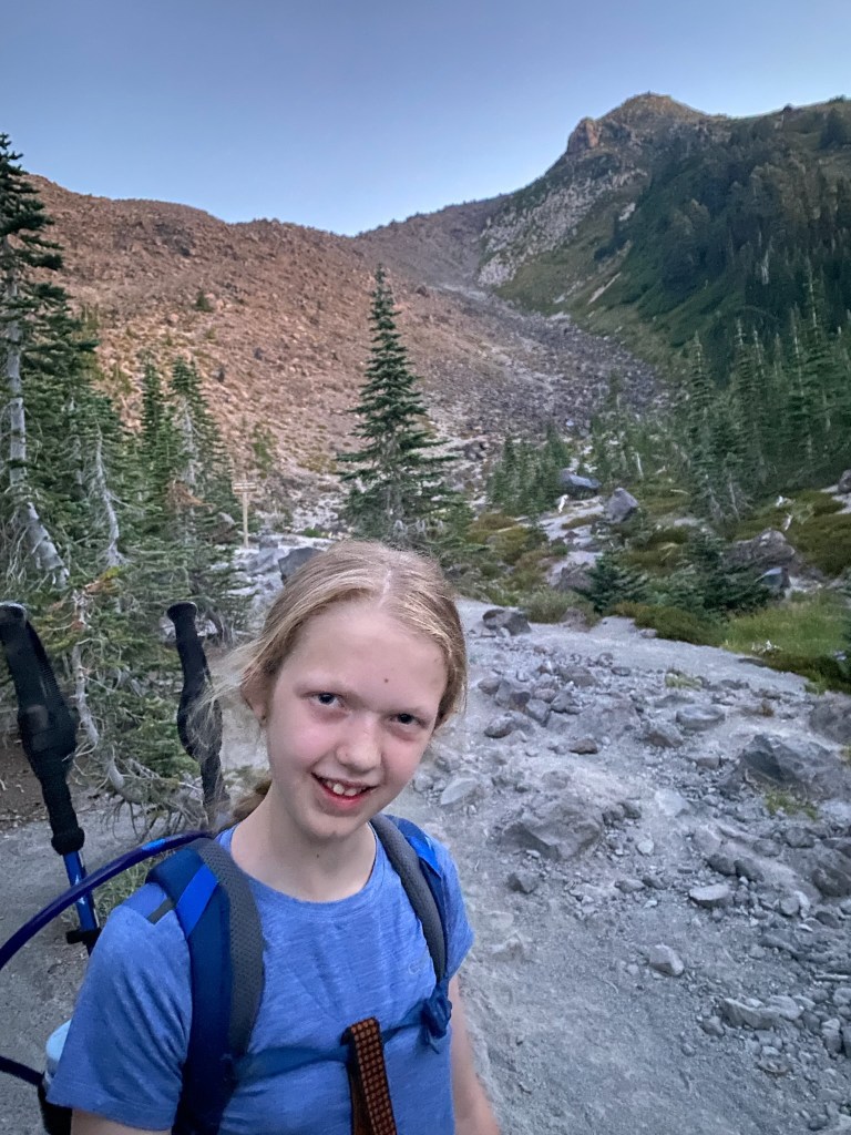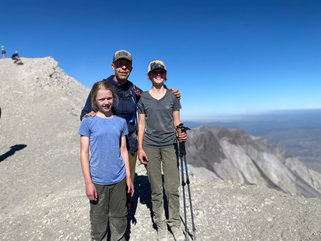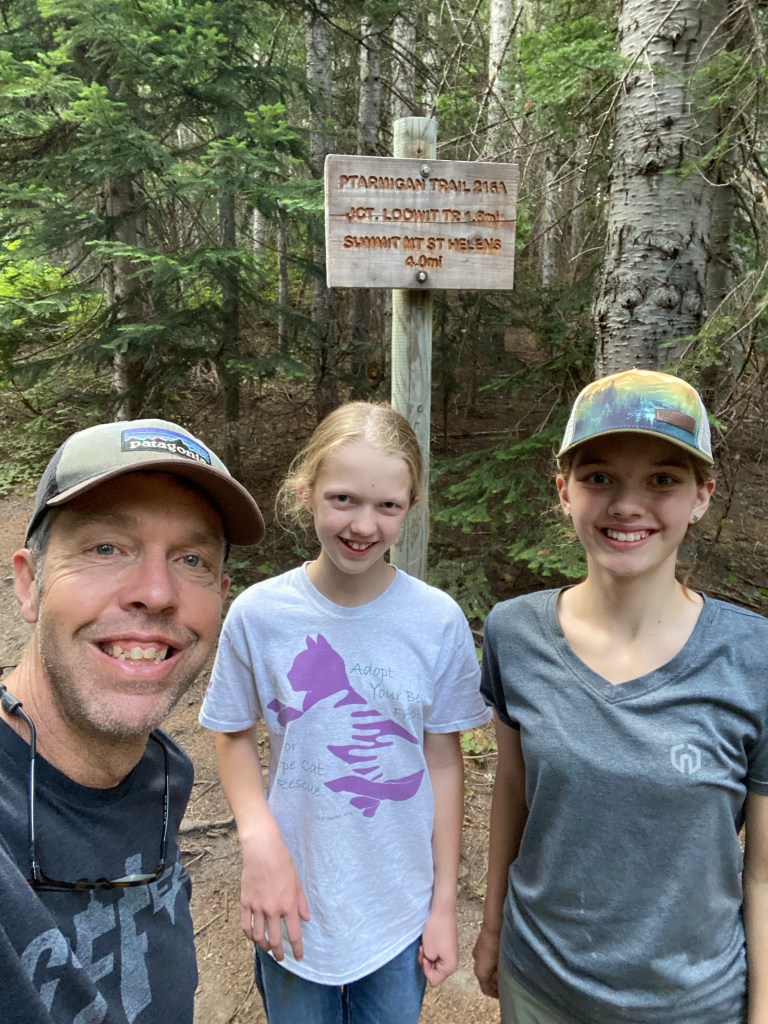 Our nightly ritual includes reading to the kids, usually books about the outdoors. Some of their favorites have been survival stories like the “My Side off the Mountain” trilogy and “Julie of the Wolves” by Jean Craighead George, who I met as a fourth grade winner of my school’s “young authors contest.” They’ve devoured the “Hatchet” series by Gary Paulson, “Call of the Wild” by Jack London, and even survivor fiction by Bear Grylls. Earlier in 2022, however, Elle and I read “No Summit Out of Sight” by Jordan Romero, the youngest person to summit the highest peak on each continent. Elle decided then that she wanted to climb mountains, starting with Mt Rainier. I told her we’d have to build up to it, but we could start smaller… say, Mt St Helens. Close by (a three hour drive), non technical, and relatively easy at 10 miles round trip with an 8500’ish summit and just shy of 5000’ elevation gain. She agreed.