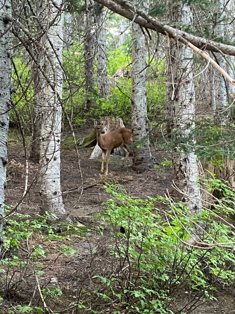As it turned out we could have done without most everything but the water and a little food. In total, about 25 lbs of gear. After packing we relaxed at camp before bed, considering what was in store for us the next day. Elle alerted us to a blacktail deer meandering next to our site.