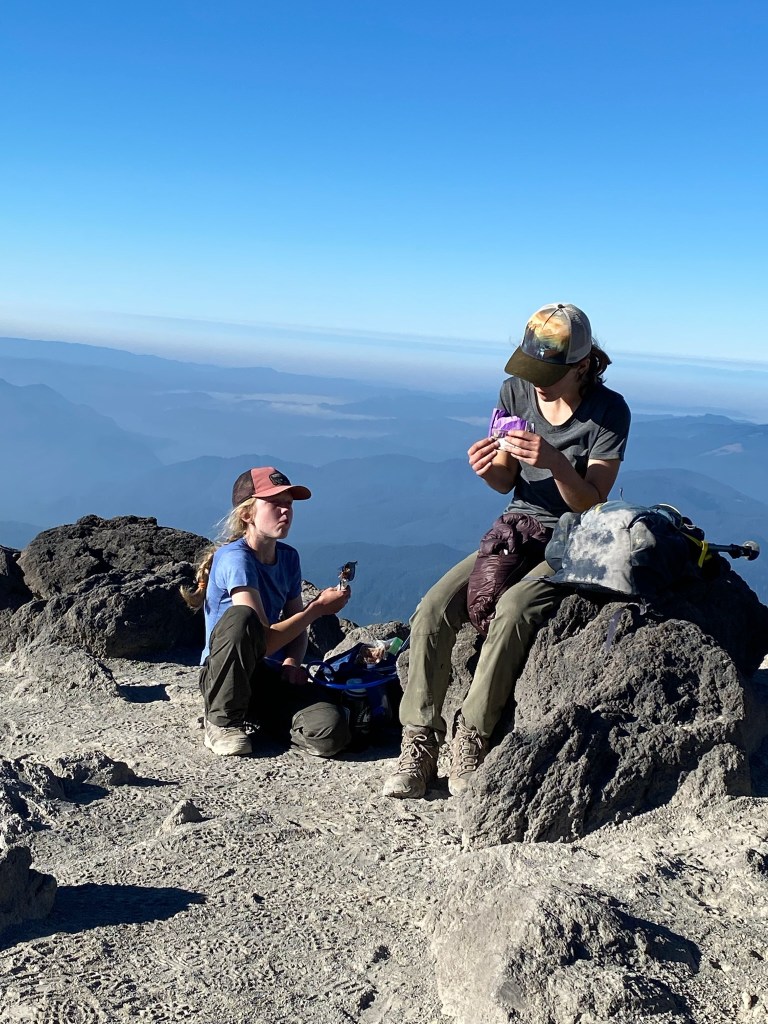It was almost 10 AM, and while Elle didn’t want to turn around she reminded me of our five hour turn around rule. We had been hiking now for 5 hours and 15 minutes. Maybe hoping I’d stick to my guns and demand a turn around as i promised, I again asked what they wanted to do, and offered “come on guys, we are so close.” We agreed we’d finish. As hikers continued to pass us they’d ask the girls how old they were, and told them they were doing a great job. I didn’t see any other kids on the mountain that day. The girls were doing amazing…. Persevering through a hike that felt hard to me.