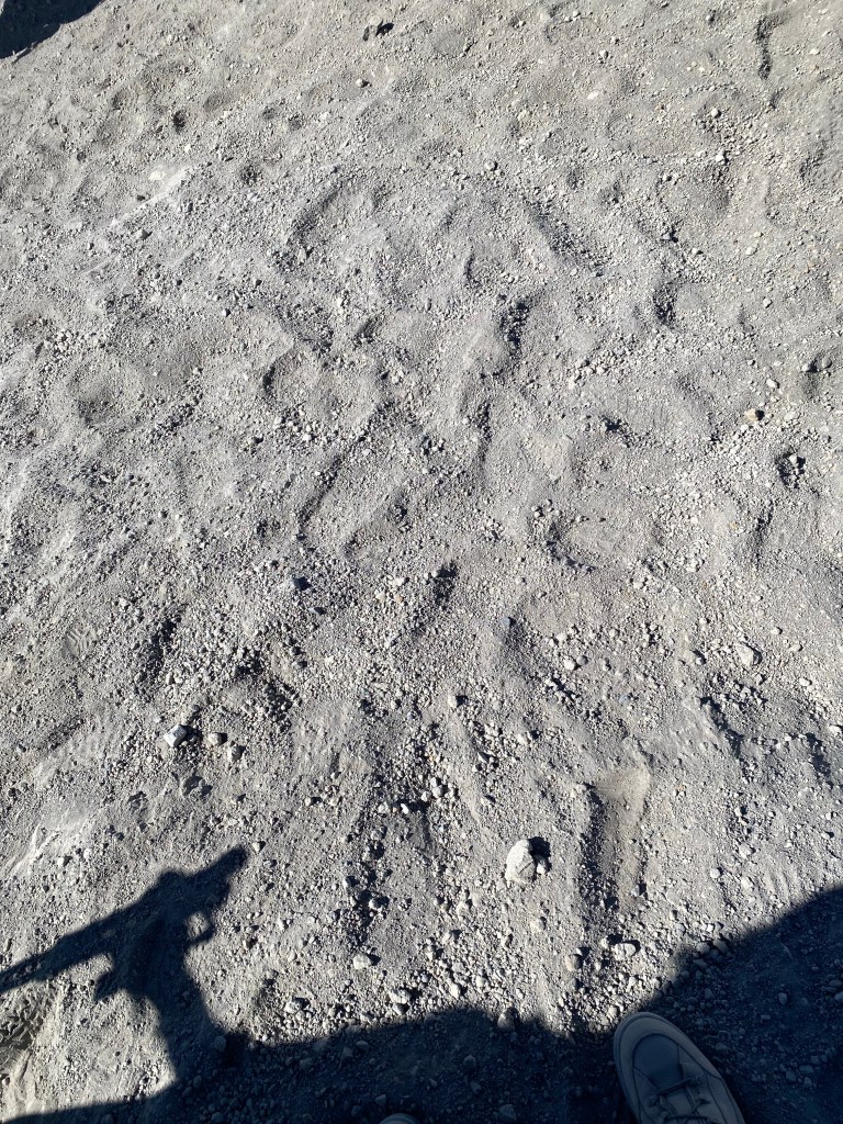 Throughout the whole hike I came to recognize different shoe tracks, and look for ones that seemed to follow better paths. At one point I wished I could find the person who wore boots with a round dot pattern on their tracks so I could thank them for leading the way.