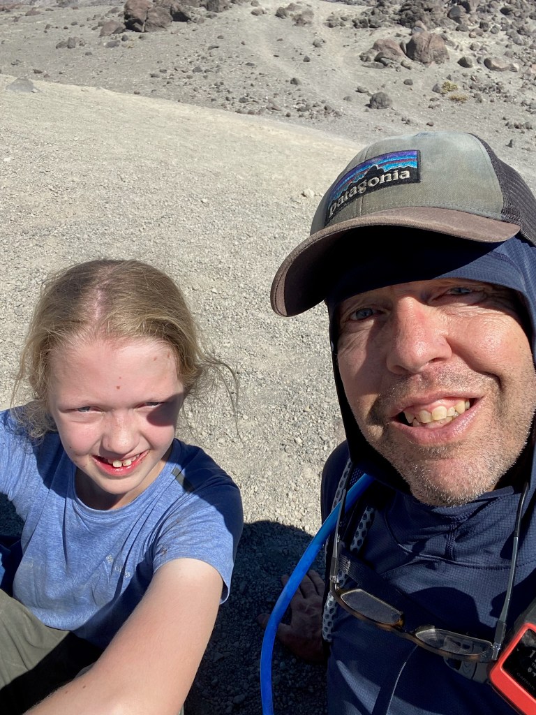Elle asked if she could ditch her pack (after several previous denied requests) and when I saw the tears, I acquiesced. I took her water in my pack, and became her, and eventually Lillian’s Sherpa for the final push. I asked both girls if they wanted to turn back. Both said no, but asked again “how much farther?” With the summit in sight, I knew it would be at least an hour of “two steps forward one step back” but also felt we had come too far to turn around.